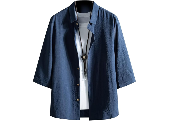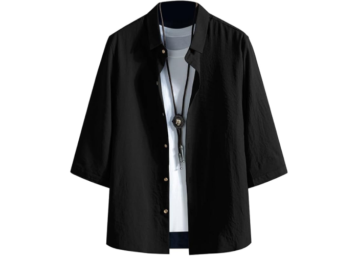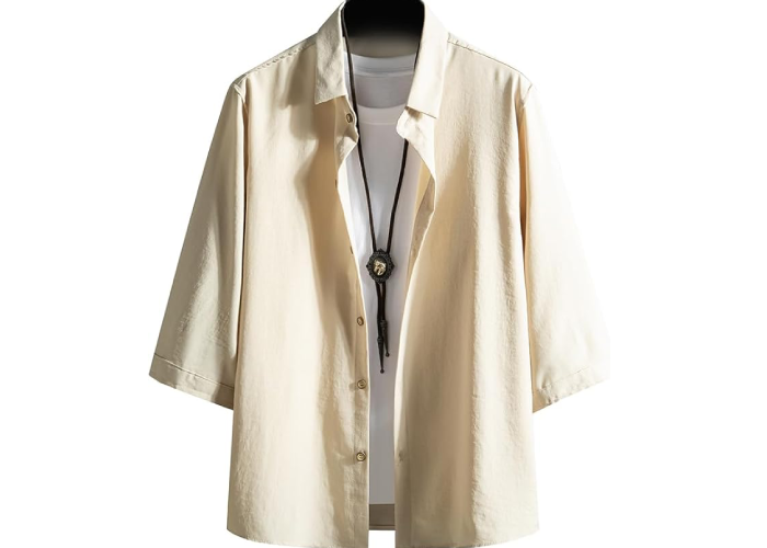 FUZHIHUA メンズ シャツ 七分袖 夏服 半袖 おしゃれ カジュアル ゆったり 無地 大きいサイズ カジュアルシャツ お洒落 トップス 軽量 通気性 柔らかい 人気服